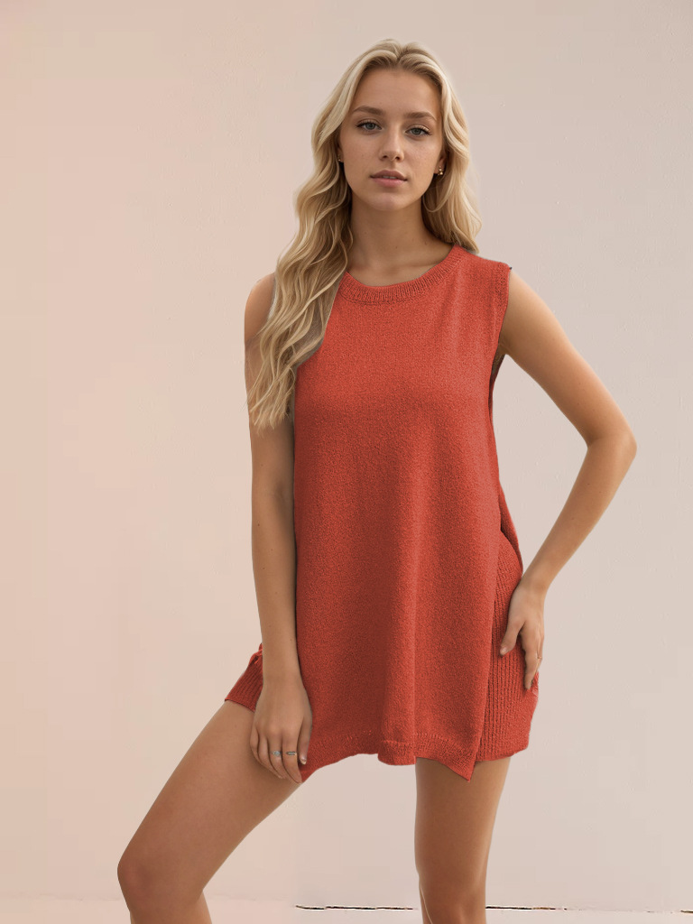 Loose plus Size Split Sleeveless Vest Casual Suit