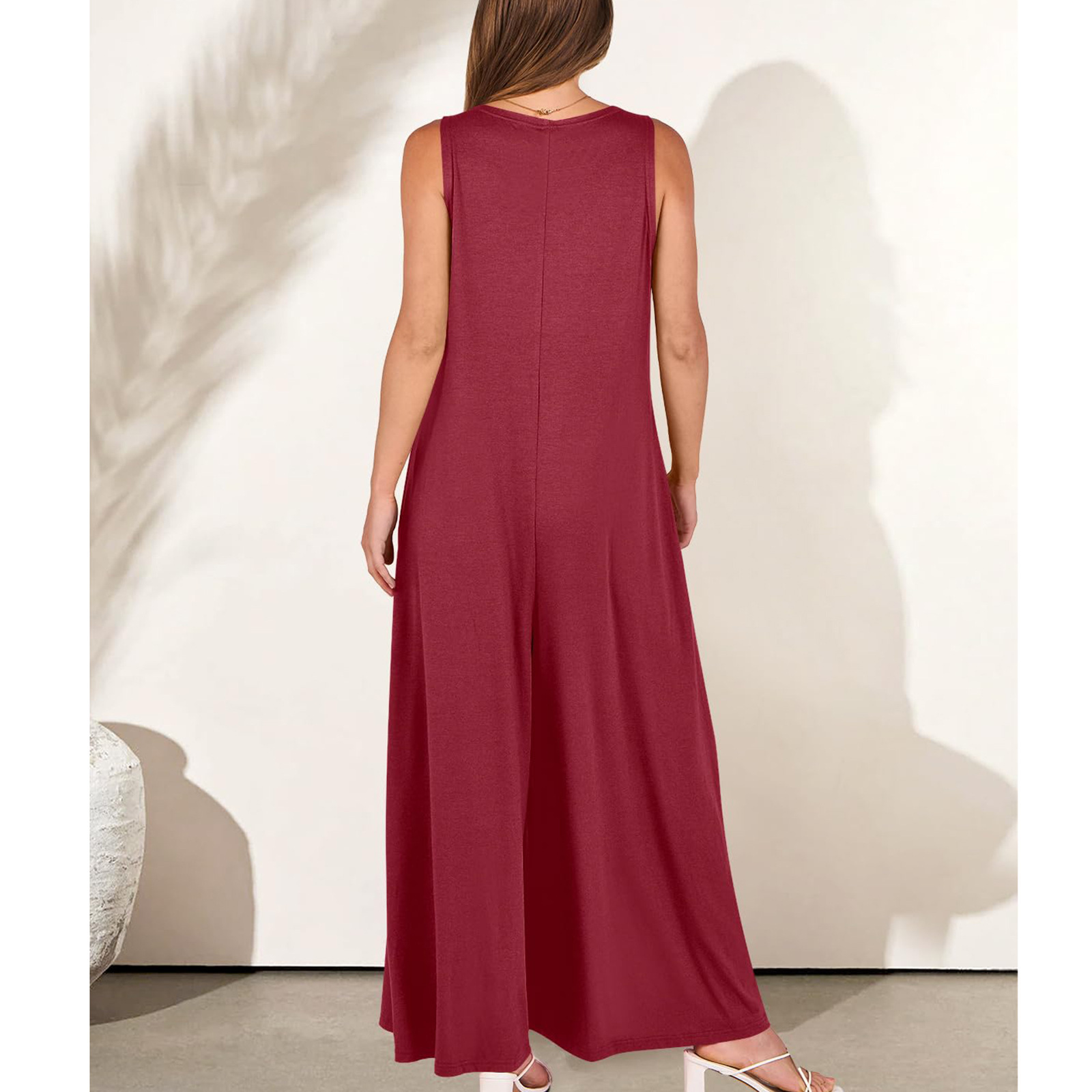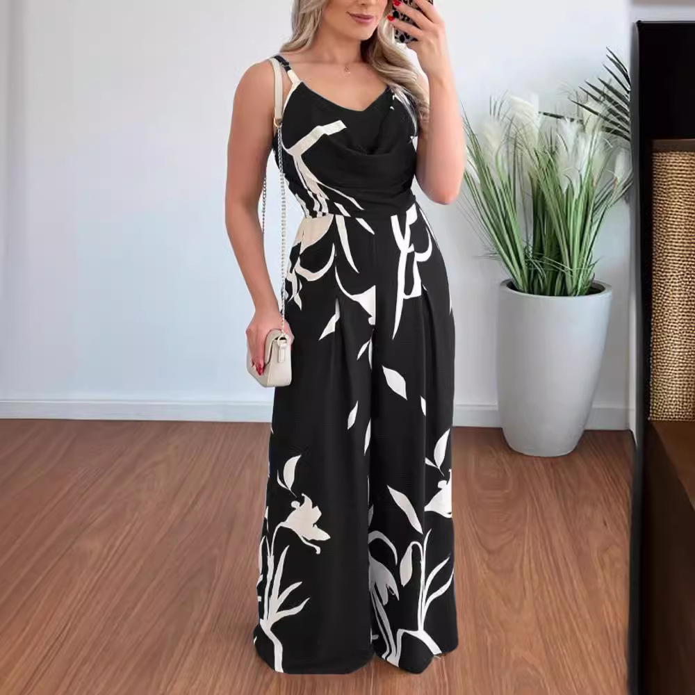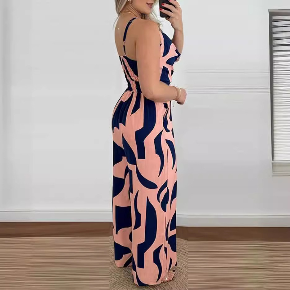 Printed Casual Sleeveless Loose Wide-Leg Jumpsuit