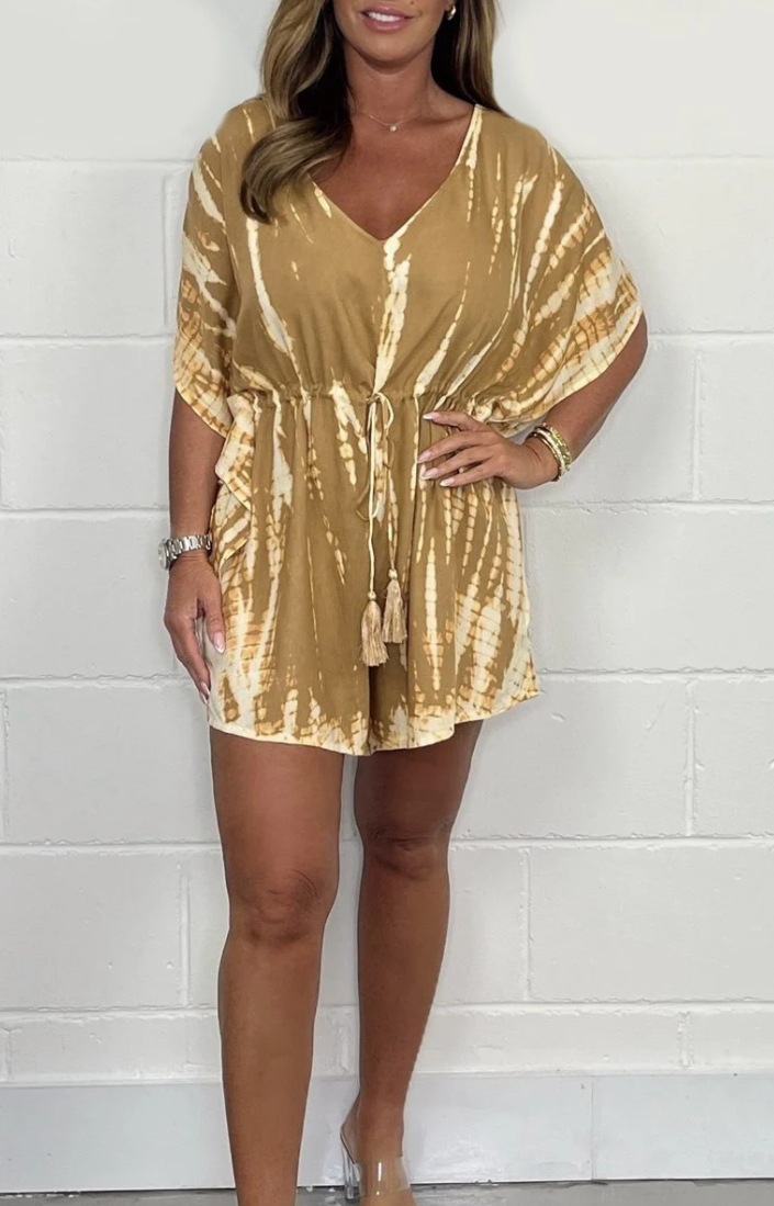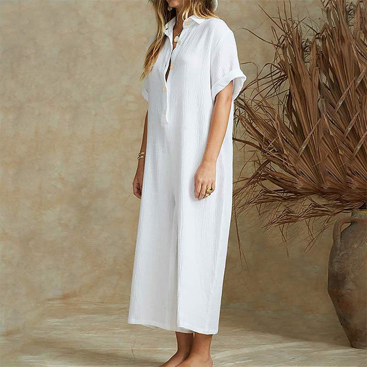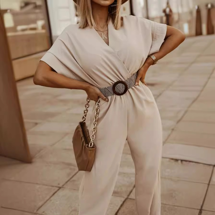 V-neck Batwing Sleeve Short Sleeve Casual Loose Jumpsuit