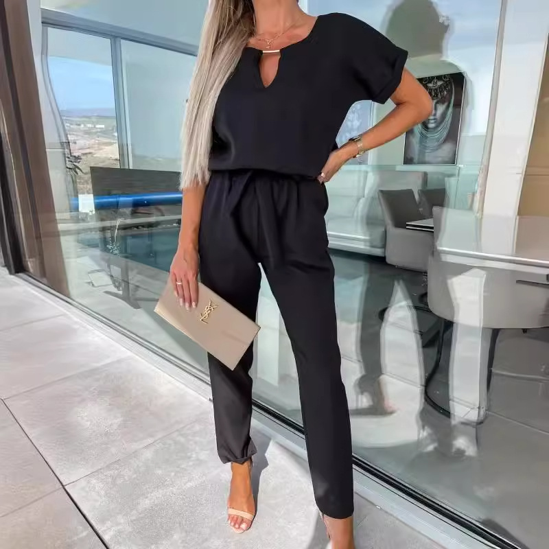 Comfortable V-neck Flounced Leisure Jumpsuit