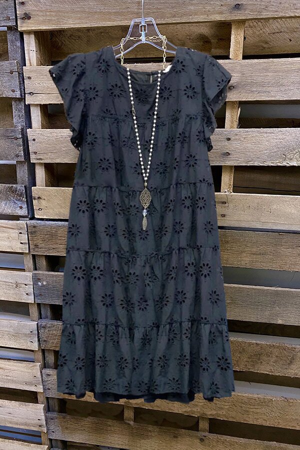 Hollow-out Floral Ruffled Gathers Jumpsuit Skirt