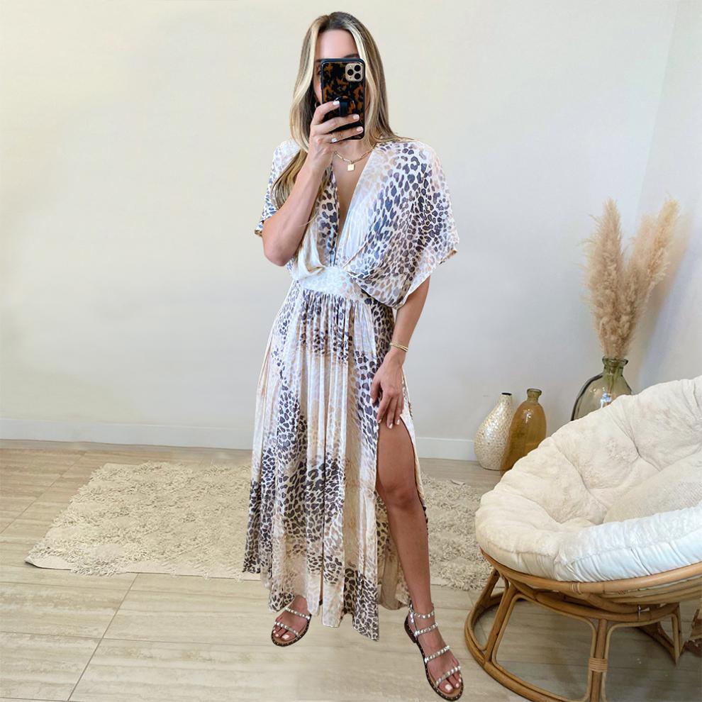 Fashion V-neck Short Sleeve Loose Bohemian Print Dress