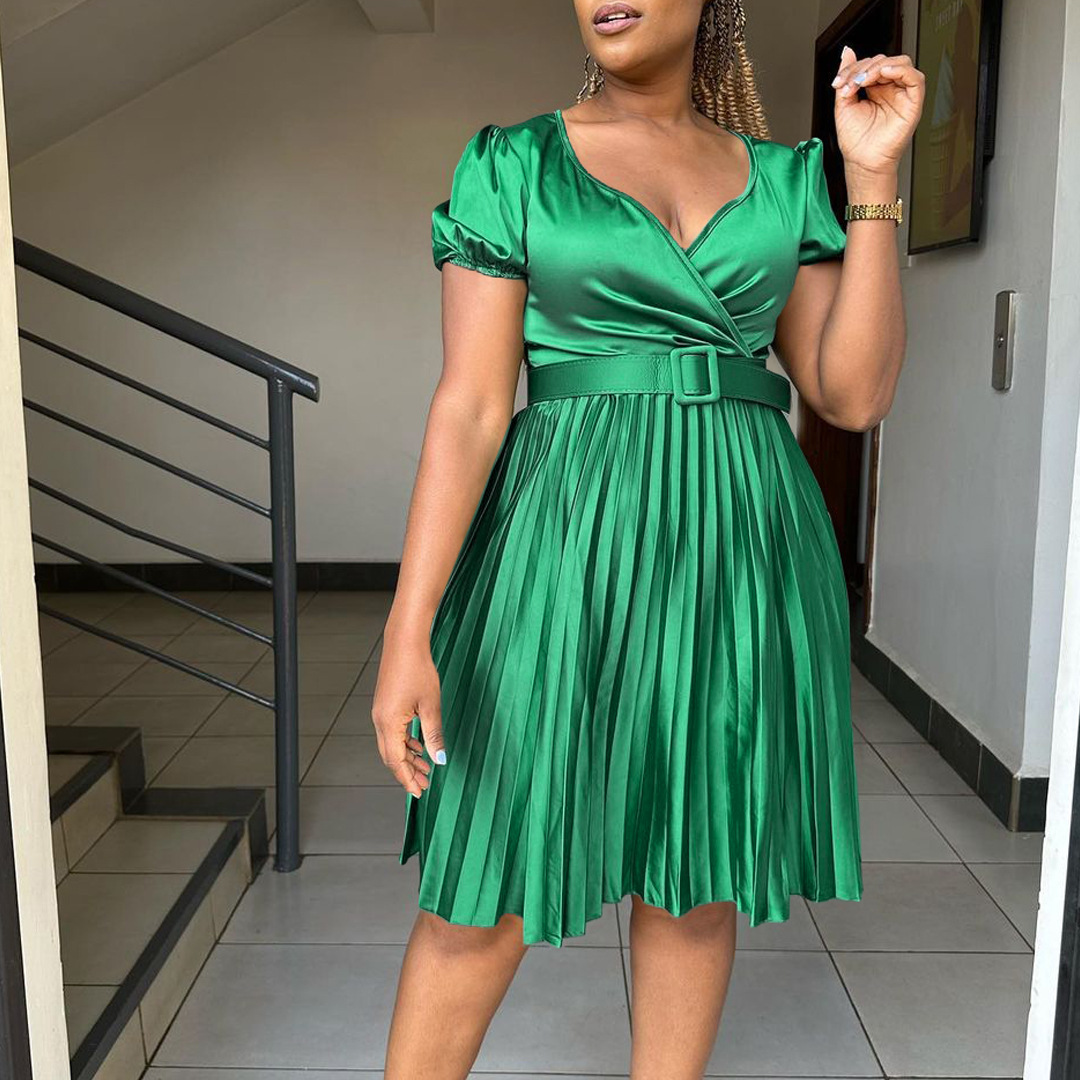 Solid Color Fashion Horn Lace Sleeve Hollow Large Size Dress
