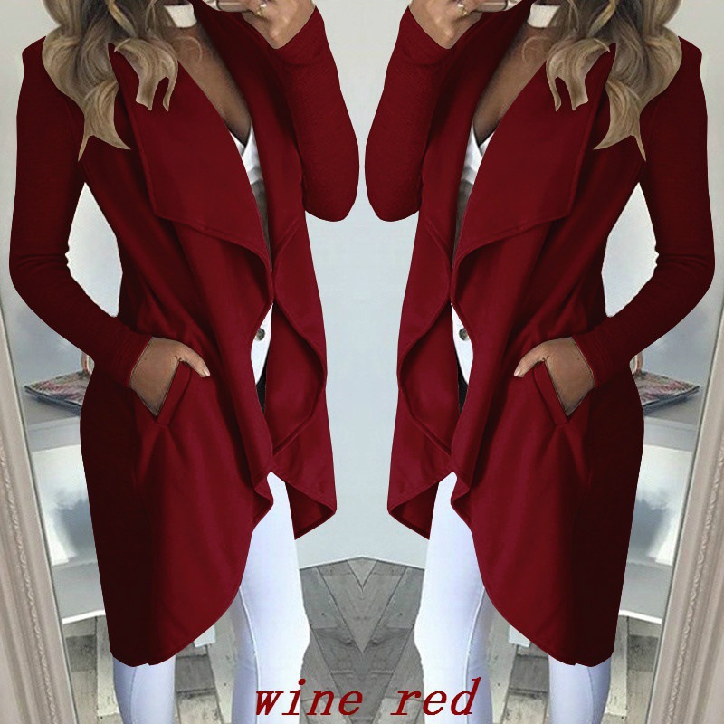 Fashion Solid Color Polo Collar Slim Fit Long Trench Coat