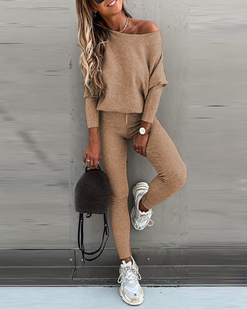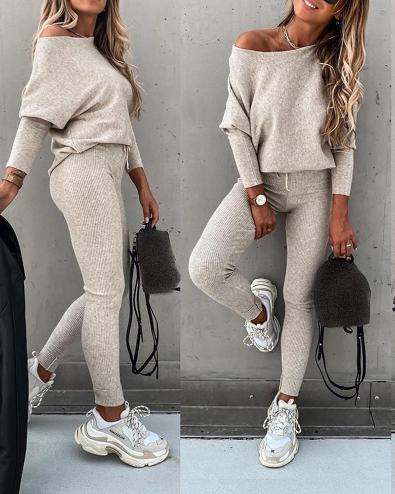 Solid Color Fashion Casual Lace up Crossbody Sports Trousers Long-Sleeved Suit