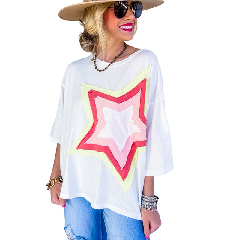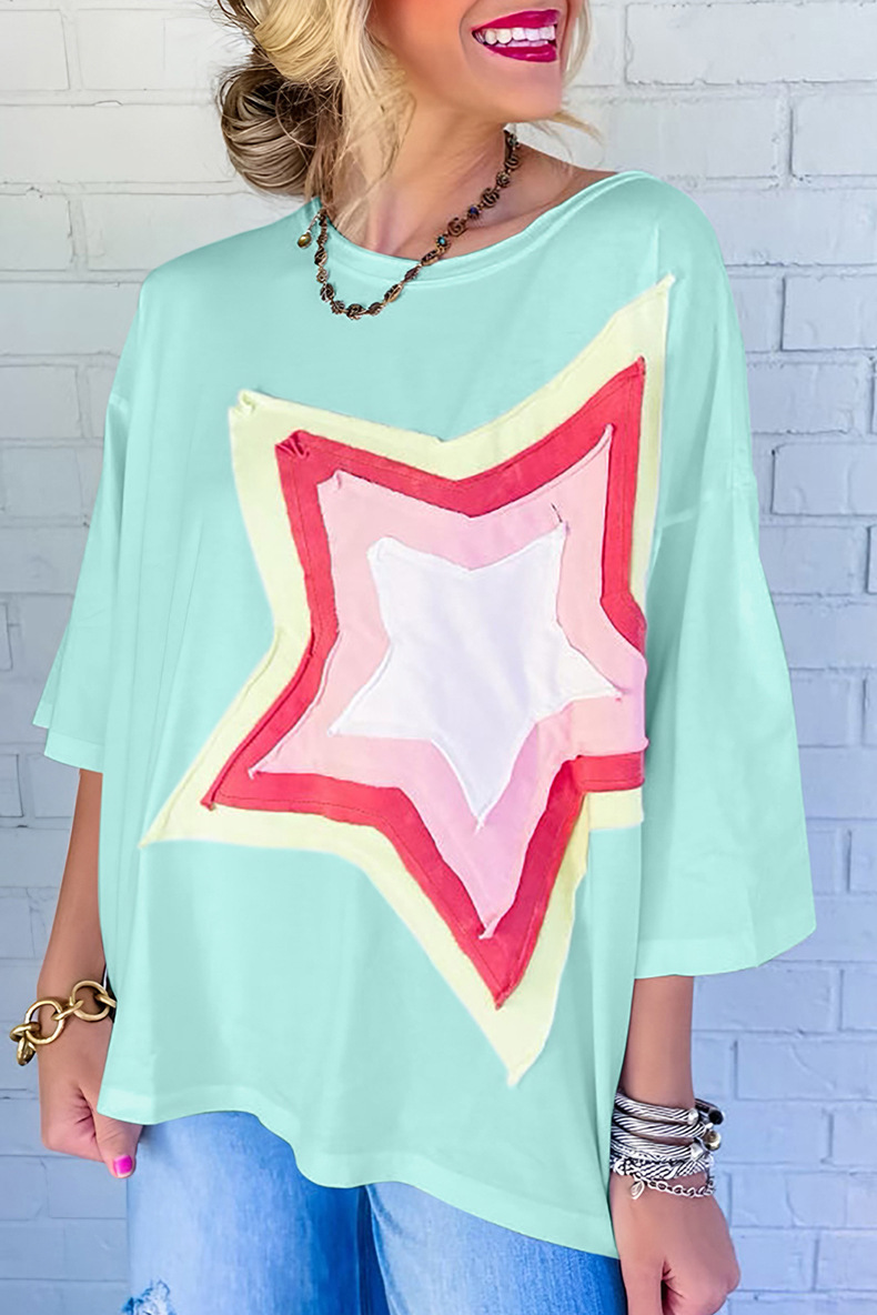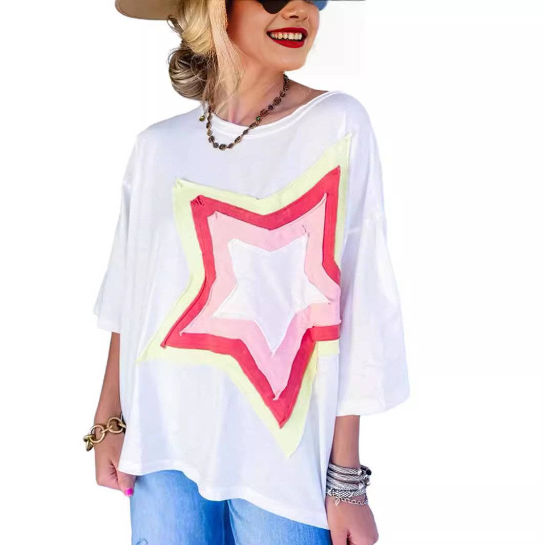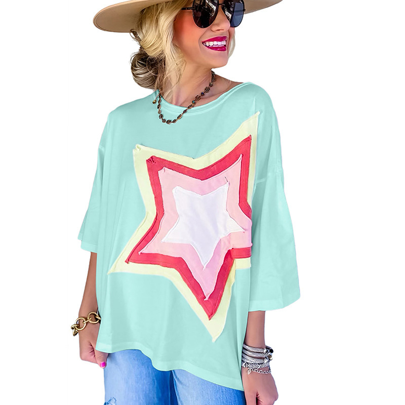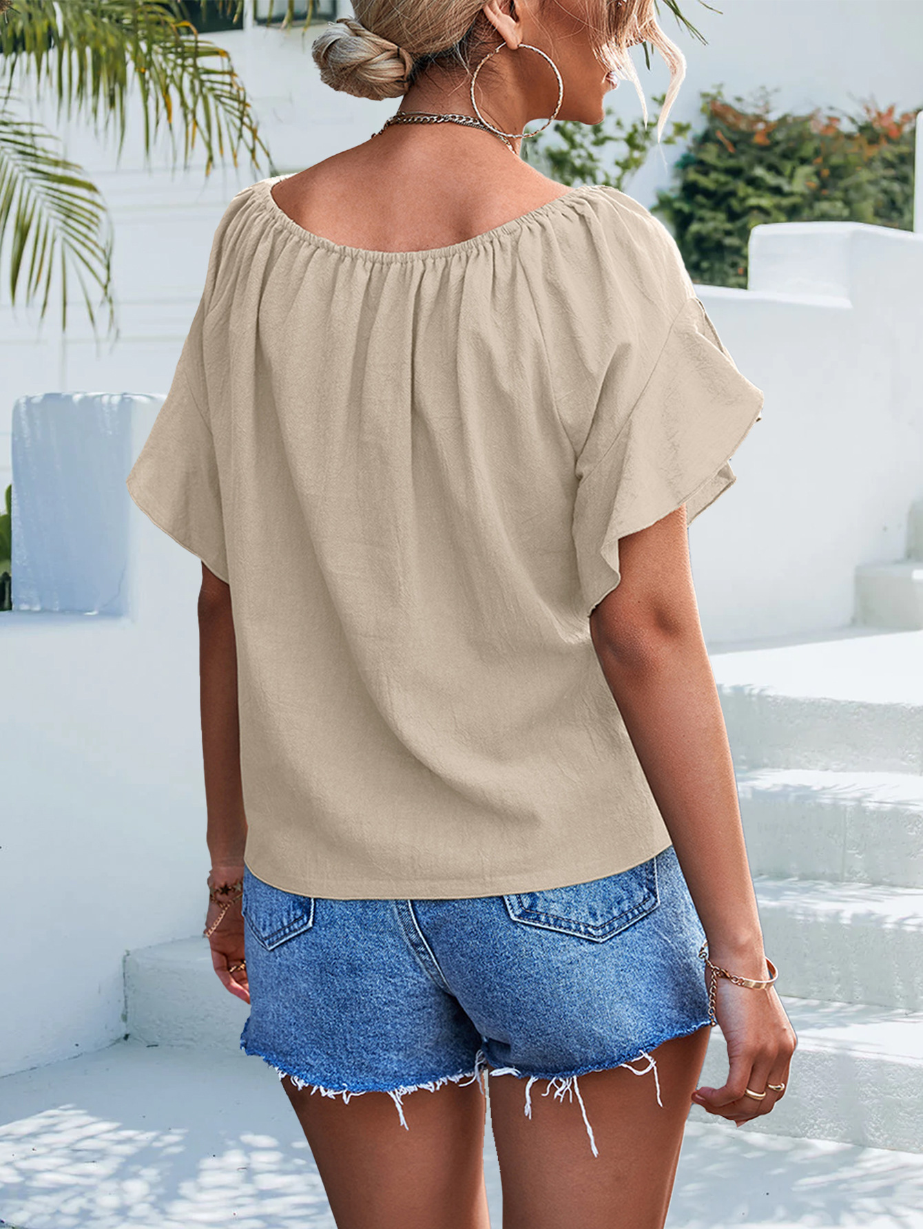 Fashion Three-Dimensional Mesh Stitching Puff Sleeve V-neck Short Sleeve T-shirt