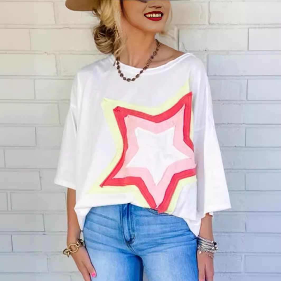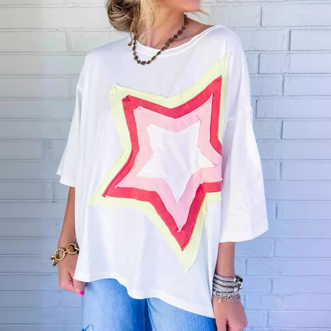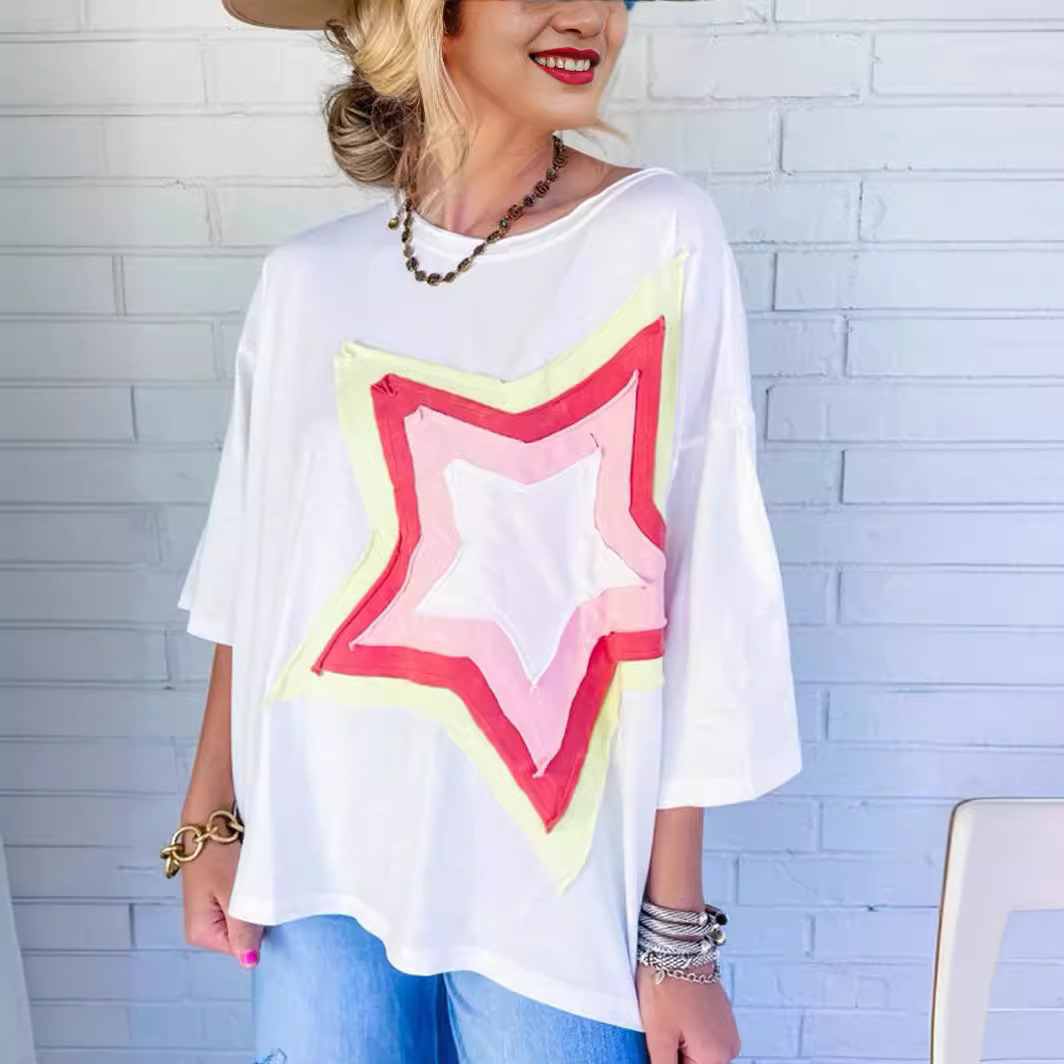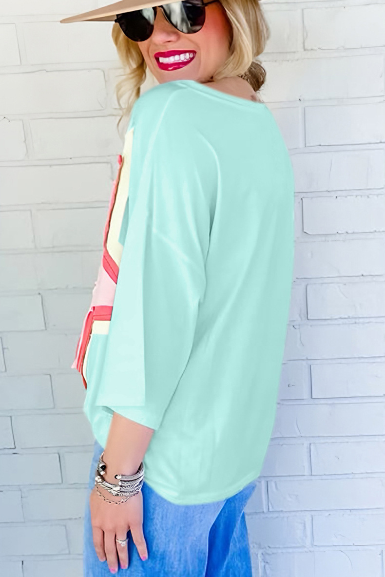 Fashion Three-Dimensional Mesh Stitching Puff Sleeve V-neck Short Sleeve T-shirt